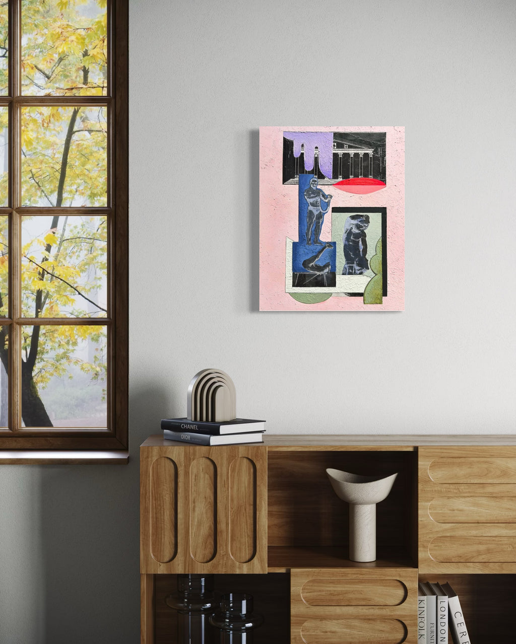 Born and raised in Sacramento, California, and partially in San Francisco, Mike Fernandez is the son of gay fathers, a unique upbringing that shaped his visual identity. He spent nearly a decade in New York working in commercial and editorial fashion as a wardrobe stylist, hairstylist, and groomer. His transition into photography was a natural extension of his aesthetic exploration, leading him to mixed-media and collage. Now based in Los Angeles, he operates under OJOSEXO STUDIO, where he continues his investigations into visual culture through large-scale collage paintings that blend digital and analog techniques.