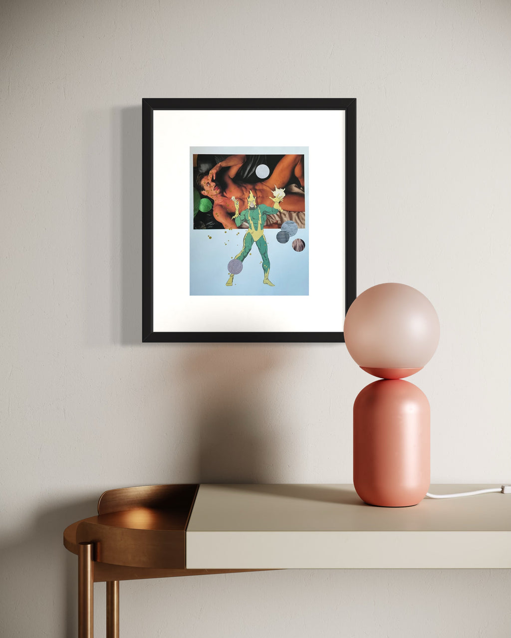 Beginning his artistic endeavors with writing, the subjects in his work prompted an interest in illustration - eventually leading to a broader focus on visual art. Drawing inspiration from heraldry, myth and geography, the near-symmetric figures suggest dignity and sanctitude. The same figures are ghosts against the backdrop of an old building, a field, a face. Through collage, a strong focus on LGBTQ+ themes is broached. Subjects are obscured and marred to bring out unseen dignity and insecurity, emotion and perception, desire and despair. New representations of self are revealed through modified composition and abstraction.