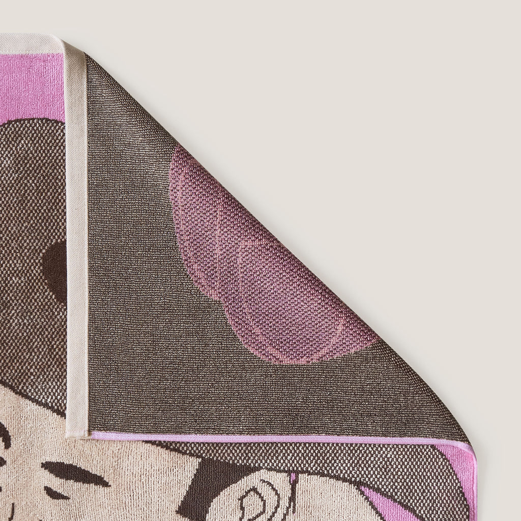 Our Cowboys Kissing artwork embodies that timeless, nostalgic mix of sexy, rugged masculinity and forbidden love. Each of our signature beach towels is crafted from luxurious organic cotton, showcasing a bold jacquard woven homoerotic illustration in a sweet, tender color palette—soft to the touch and even more seductive. Our towels are designed to be a functional statement piece for any pool or beach outing and a meaningful collectible for your own gay ass or your loved ones. Whether spread out on the sand or draped over your shoulder, these towels embody the spirit of pleasure, pride, and refined taste. Dive in and make some waves.Details