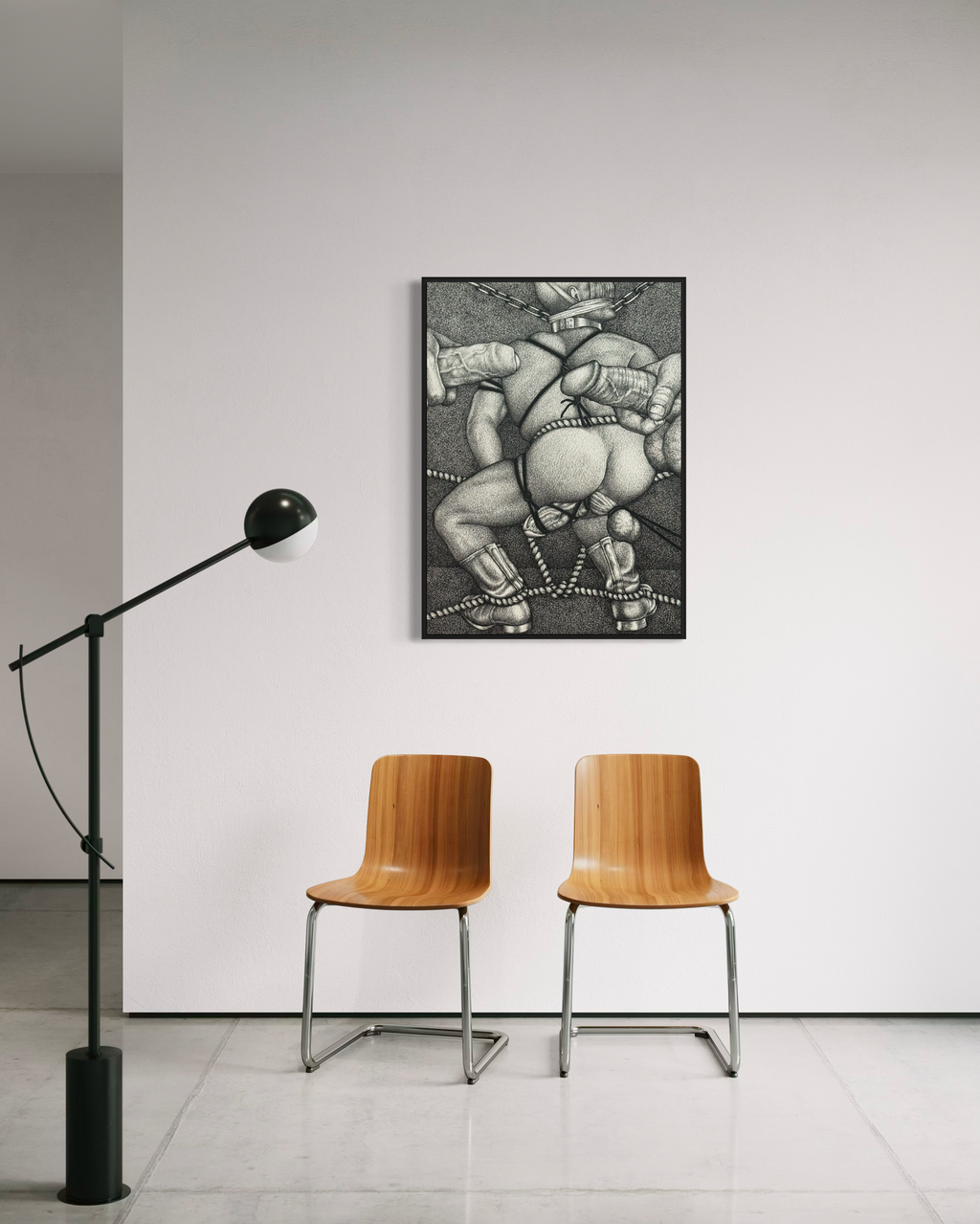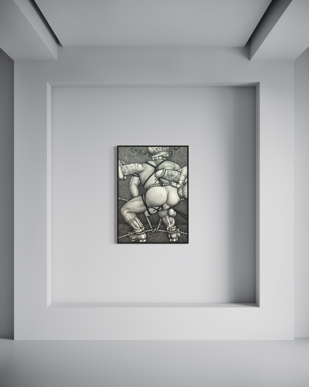 The legacy of Tom of Finland (Touko Laaksonen) continues to resonate powerfully across contemporary art, fashion, and visual culture. Widely recognized for his unapologetic and meticulously rendered depictions of hypermasculine gay figures, Tom of Finland not only redefined queer representation in the 20th century but also laid a bold visual foundation that continues to inspire generations of artists. In this spirit, the inclusion of works by artists such as Etienne and Bill Ward in the CULTUREEDIT auction reflects the enduring reach and evolution of Tom’s visual language. French artist Etienne has acknowledged the aesthetic and political impact of Tom’s imagery in shaping his own explorations of identity and desire. Through stylized photography and carefully staged portraiture, Etienne revisits the codes of leather, uniform, and sculptural masculinity, translating Tom’s graphic vocabulary into a contemporary photographic idiom that blends erotic charge with intimacy and self-aware theatricality. British illustrator Bill Ward represents another important strand within this lineage. Emerging from the world of British comics before turning to gay erotic illustration, Ward became known for narrative drawings that combined the muscular dynamism of adventure comics with unapologetically homoerotic themes. His serialized character Drum, published in magazines such as Drummer, helped define a visual language of rugged masculinity deeply connected to leather and biker subcultures. With bold linework and a strong sense of storytelling, Ward’s work expanded the possibilities of queer erotic comics and circulated within the same underground networks that championed Tom of Finland’s imagery. Presented together in this auction, these artists trace a broader continuum of queer visual culture—from Tom of Finland’s foundational drawings to later interpretations that translate his spirit across media, generations, and cultural contexts. Additional participating artists include Olaf, Valentine, Axel, Alan, Kent and Brick Bradford, whose works further expand this dialogue, highlighting the breadth, humor, and enduring vitality of queer erotic art across multiple voices and perspectives.