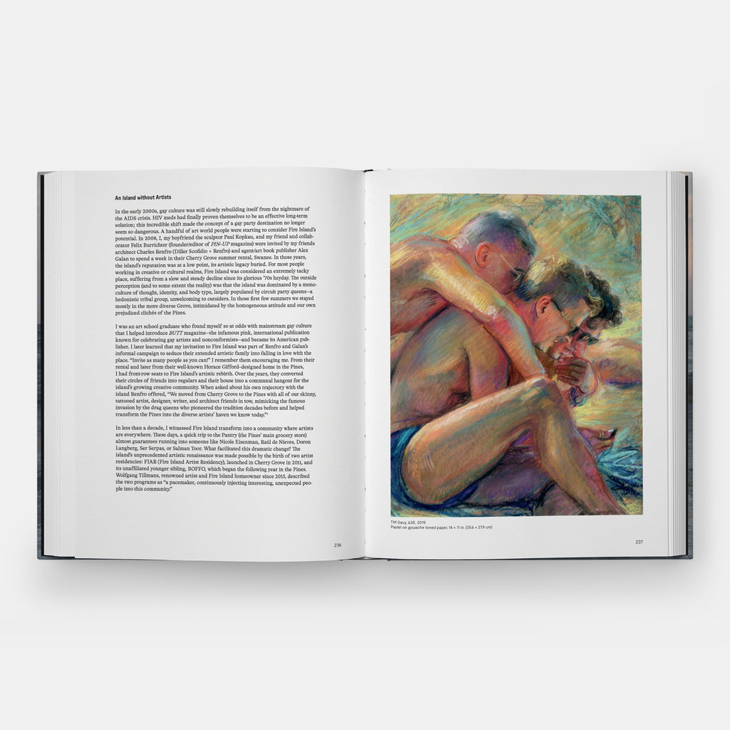 Richly illustrated, the book includes the work of historic artists including Paul Cadmus, David Hockney, Peter Hujar, Robert Mapplethorpe, Paul Thek, and Andy Warhol; and also chronicles the explosion of art-making on the island over the past fifteen years, with works by contemporary artists such as TM Davy, Nicole Eisenman, Lola Flash, K8 Hardy, Lyle Ashton Harris, Doron Langberg, Wolfgang Tillmans, and Salman Toor.