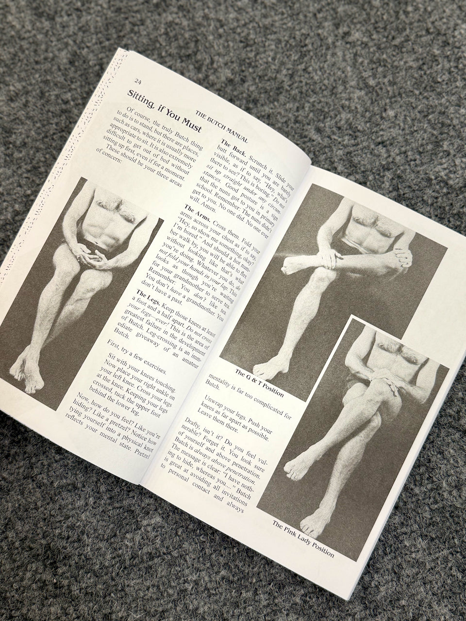 "No one was born Butch. People were born babies and promptly burst into tears, which was most Un-Butch," declares Clark Henley's Butch Manual, a hilarious 1980s cult classic that reminds us that being "butch" is just another form of drag. The Butch Manual educates wannabe Butches on how to walk, talk, stand (or lean), dress and even what drugs to take to avoid "the freak out zone." Henley doubles as a hunky model for campy photo spreads demonstrating the proper way to sit (if you must) and an admonishment to the fey among us: "Do not talk with your hands."