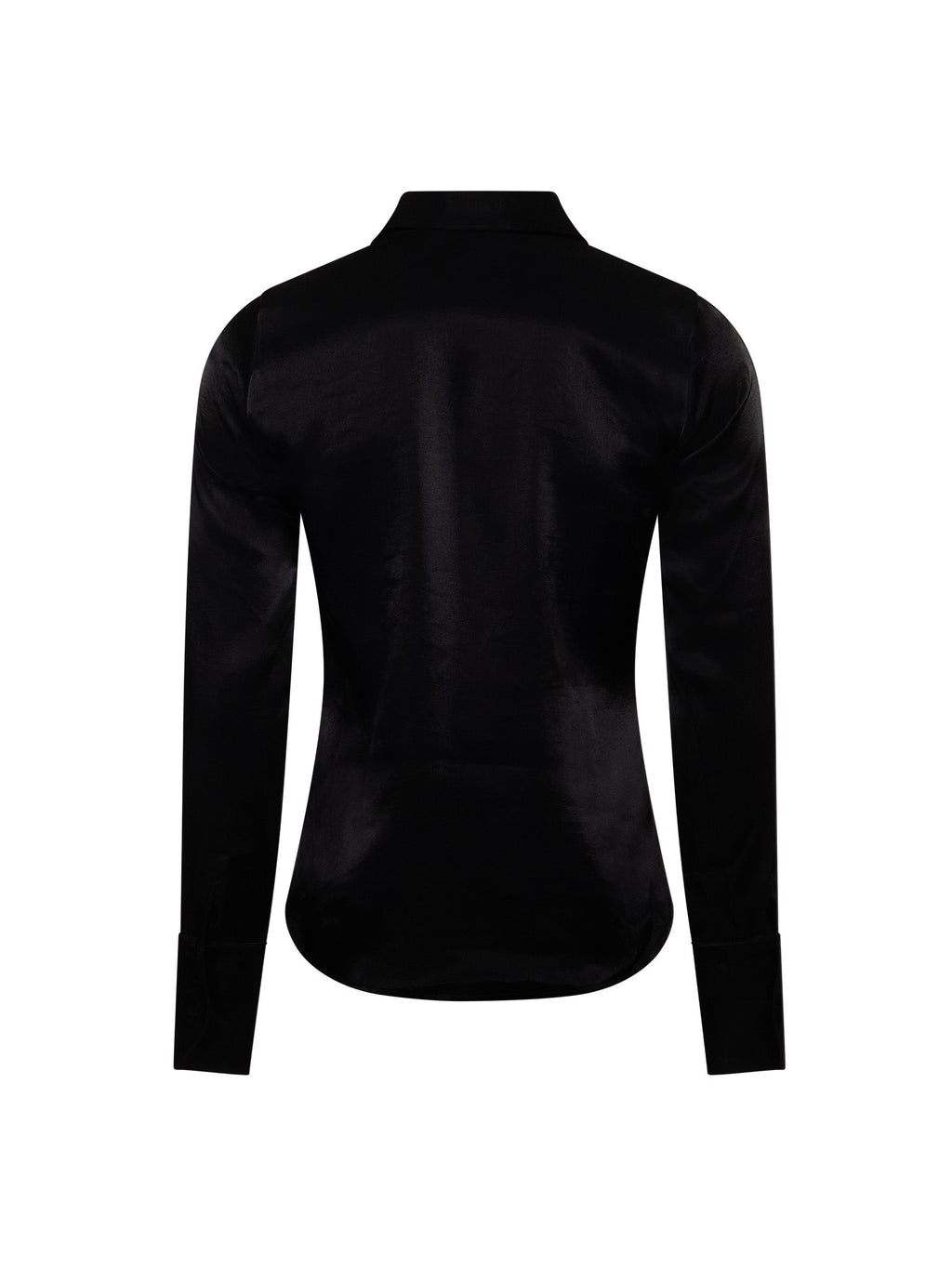 The shirt is made from a soft shiny fabric and features a slim-fit cut that beautifully accentuates the body.
