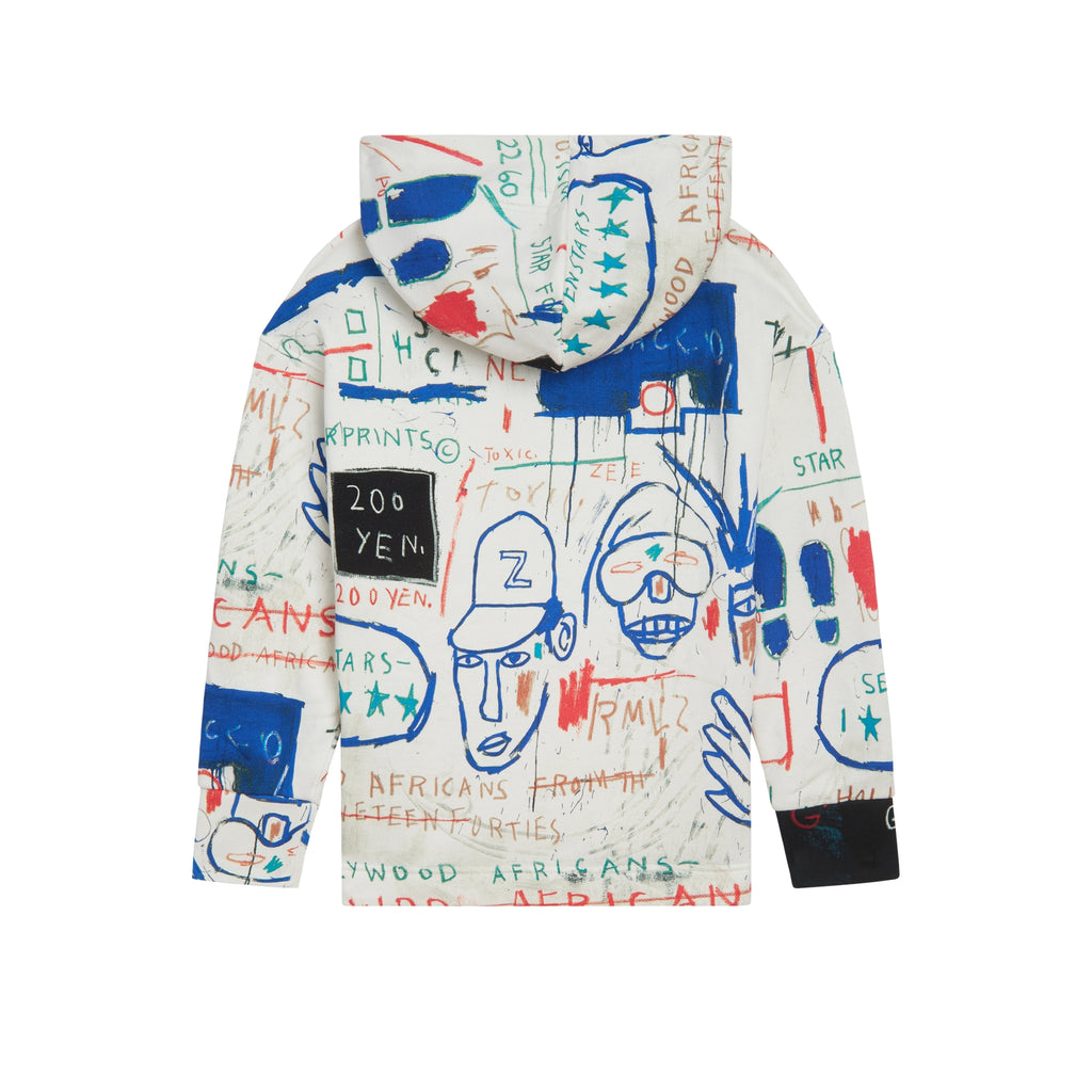 This graphic printed hoodie is designed in a loose oversized fit with Basquiat's artwork Hollywood Africans printed all over this hoodie.
