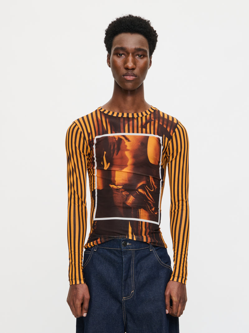 LOVERBOY BY CHARLES JEFFREY POWERMESH LONG SLEEVE TEE in ORANGE BLACK
