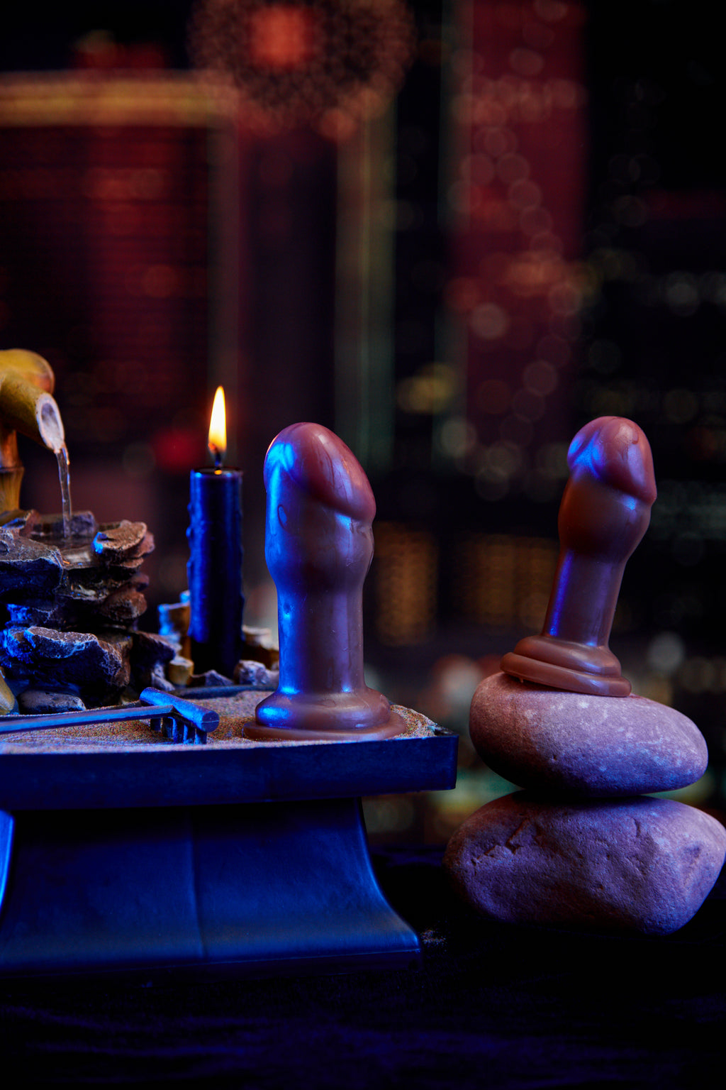 These fun little plugs are solid and smooth, with a realistic cock-shaped head, with a flared base for safety and a sturdy suction cup that will grip any flat surface. The firm yet flexible material has a slight amount of give for easy insertion. Made out of a premium PVC that is latex and phthalate-free. Take this fun duo home today and enjoy exciting and realistic anal play.