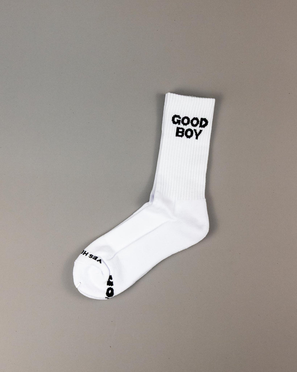 The Good Boy Socks are soft, tight, and dangerously obedient. With Good Boy down the sides, Yes Homo across the toes, and Yes and Homo on the soles, they’re made for praise lovers, flirty behavior, and being told you’re doing such a good job.