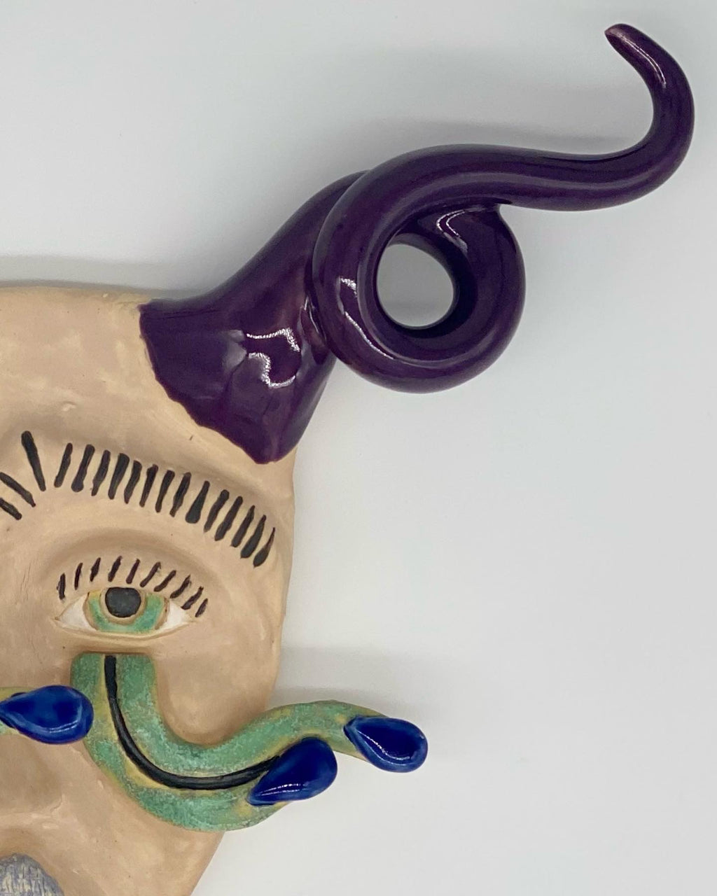 Carlos is a Mexican ceramic artist who grew up in California. His trips to visit and travel his home country of Mexico sparked his love for Mexican folk art and specifically devil masks. His work blends inspiration from traditional masks he has seen with his own experiences through his life.