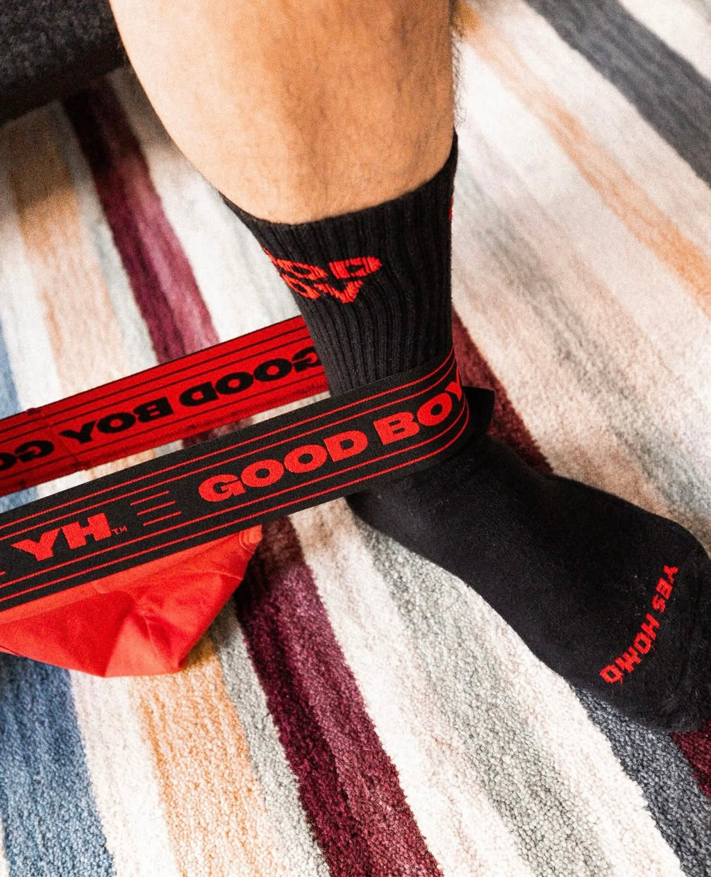 In a bold black and red color, it features our signature waistband and a tearaway tag in the back, because good boys like it clean, tight, and to the point.