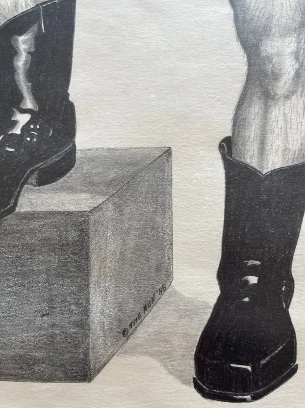 Bill Schmeling (April 30, 1938 – September 12, 2019), better known by his pen name The Hun, was an American artist active in the late twentieth and early twenty-first century, known for his explicit, homoerotic fetish illustrations and comics. Recurring characters in his comics include Big Sig (a naïve but sexually adventurous, semi-literate young man) and Gohr (a barbarian living in a brutal, post-apocalyptic world). His art is characterized by hyper-masculine characters with exaggerated muscles, nipples, and genitalia. Sex scenes routinely involve BDSM with an emphasis on bodily fluids, including urolagnia and scatophilia. Prison rape, fisting, leather and uniform fetishes, and police and military settings are also commonplace.