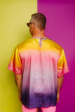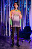 Details: Oversize woven T-shirt with transfer print. Tie neck closure in the back.