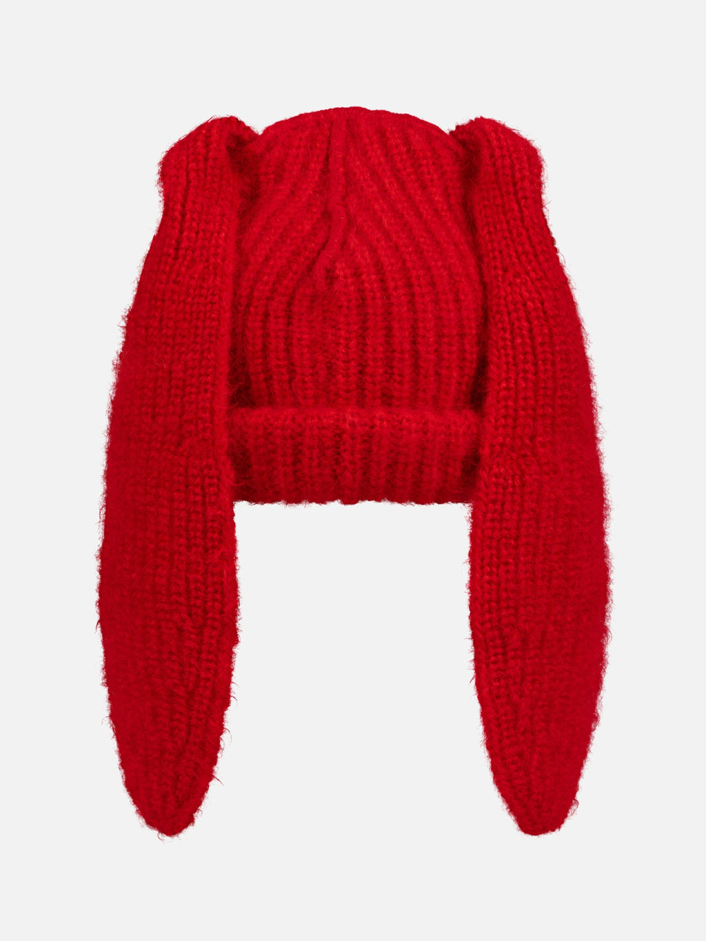 LOVERBOY BY CHARLES JEFFREY MOHAIR CHUNKY RABBIT BEANIE in RED