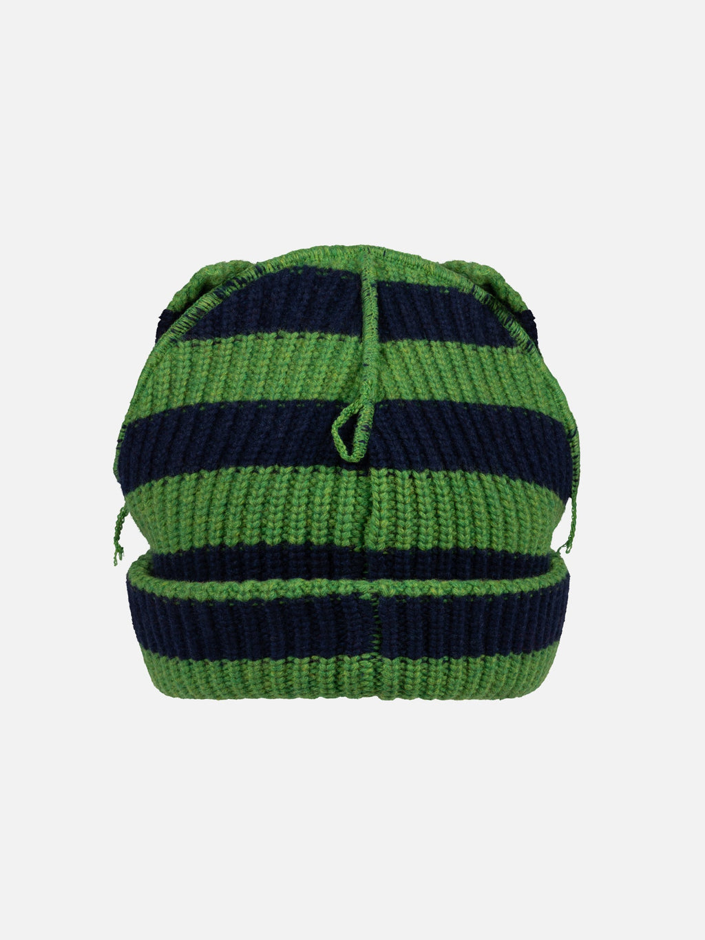 LOVERBOY BY CHARLES JEFFREY SUPERSIZED CHUNKY EARS BEANIE in GREEN NAVY