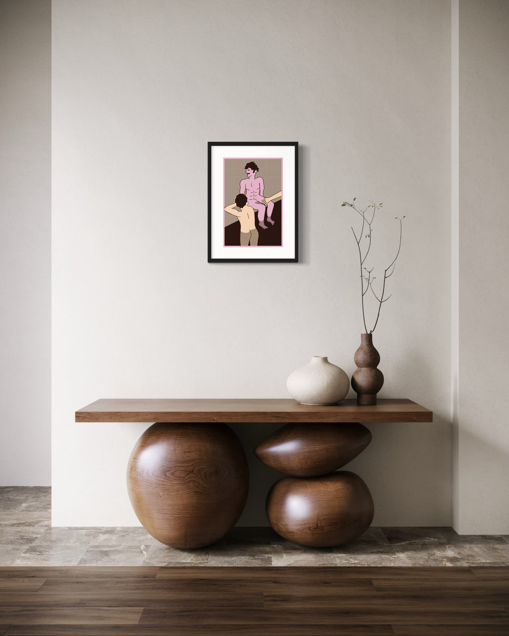 original Cruising artwork evokes the memories of any secret rendezvous with an unexpected lover in those elusive, mysterious woodsy spots that we all know exist around the world.